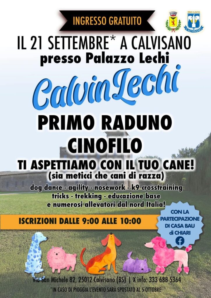 Venite a trovarci a Calvisano dove saremo presenti con i nostri cani! Ci sarà un divertentissimo raduno cinofilo nella cornice del palazzo Lechi